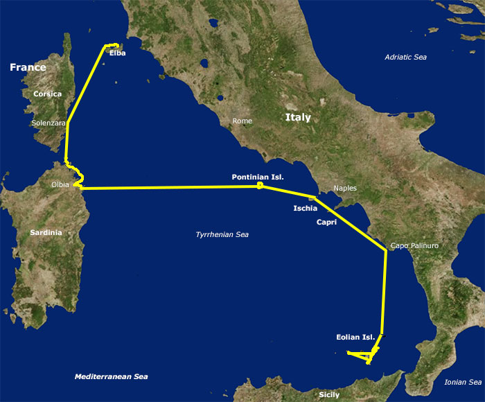 14.09.2014 Auf der Fahrt nach Sardinien: Ein kleiner Vogel ruht sich in der Mitte des Tyrrhenischen Meeres kurz auf unserem Boot aus
