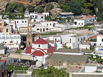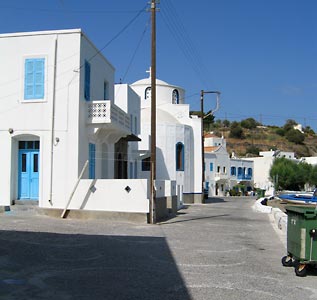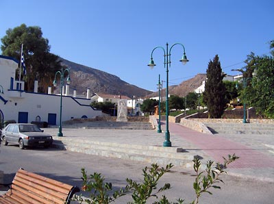 Pali mit dem Hauptdorf Mandraki und mit dem Dorf am Rand des Vulkankraters.