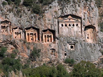 das Dorf und klettern zu den interessanten lykischen Gräbern hoch. Das kleine