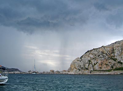 Regen aber es ist hier wesentlich ruhiger, als in der Knidos-Bucht. Ich profitiere