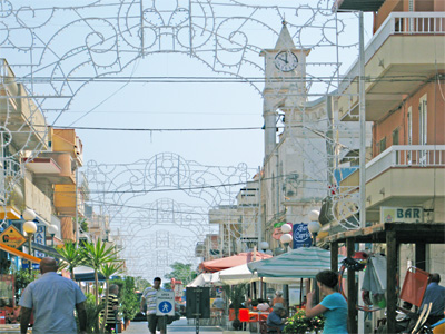 Portopalo: links: vor Anker im Hafenbecken, rechts: die Hauptstrasse im Dorf