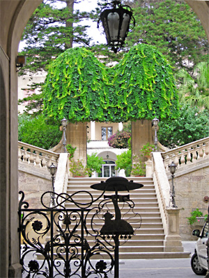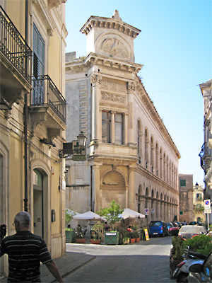 Ragusa: links: die Kathedrale, rechts: der Eingang zu der Bischofsresidenz