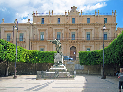 Noto die barocke Stadt im Südosten von Sizilien: links: die Kathedrale, rechts: das Gemeindehaus