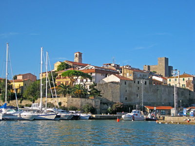 links: Giannutri: vor Anker in der grossen Bucht, rechts: Talamone: schon Mitte September total ausgestorben...
