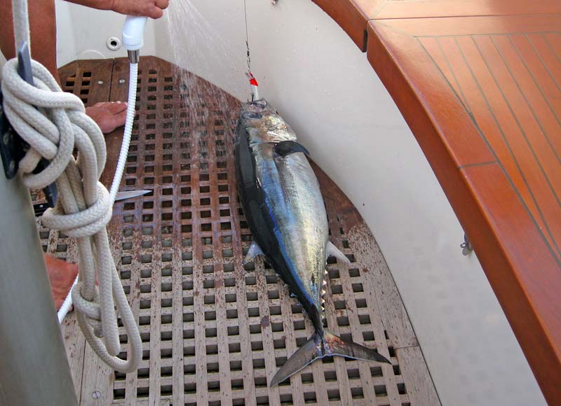6. Juli 2011: Unterwegs, ungefähr auf der Höhe von Heraklion Es war aber auch Zeit! Ein Langflossen-Thunfisch