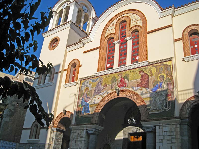 10. Juli 2011: Agios Nikolaos Die Frontseite der schönen Kirche Agia Triada.