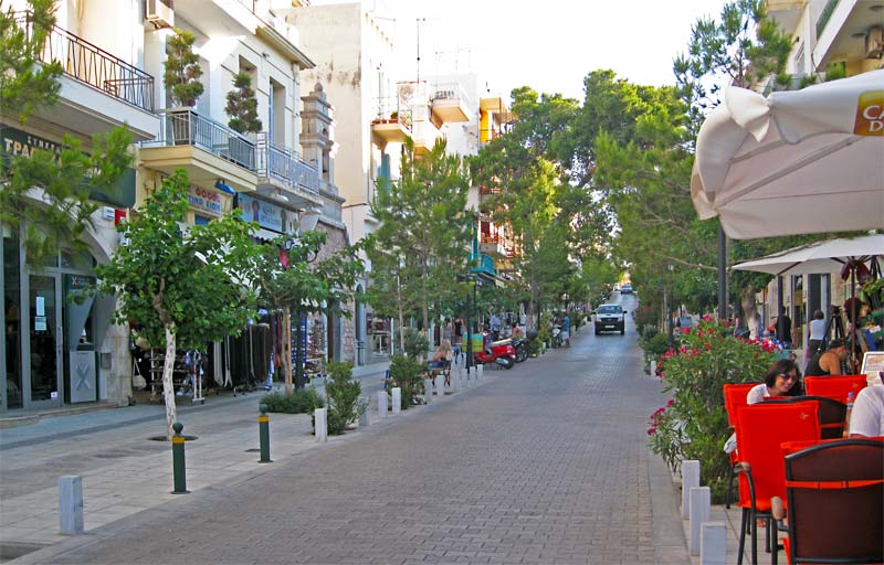 10 Juli 2011: Agios Nikolaos Eine Flanierstrasse in der Stadt.