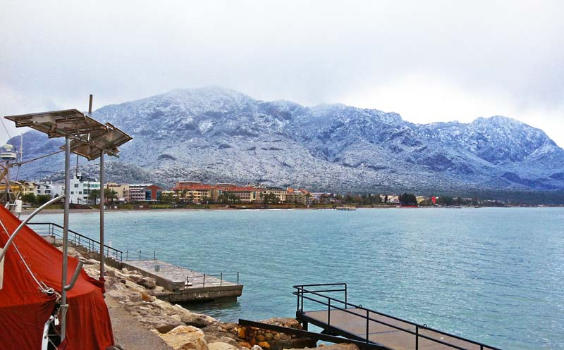 29. Februar 2012: Kemer es hat sogar bis unten in der Stadt geschneit!