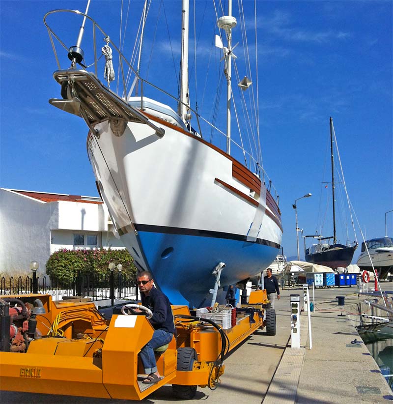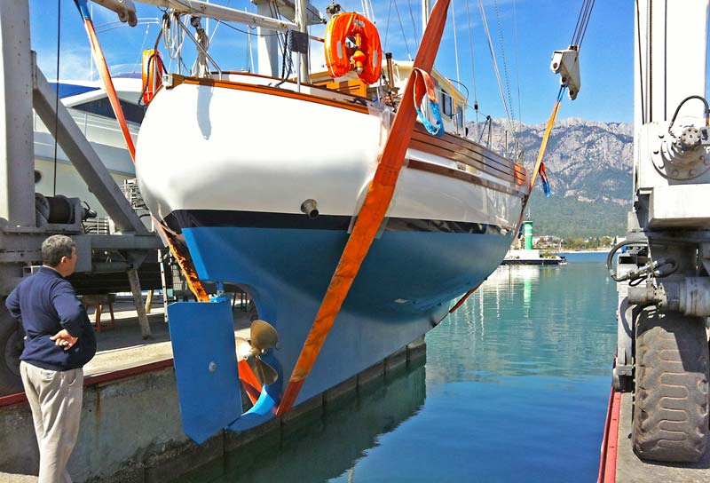 24. März 2012: Kemer und wird endlich wieder ins Wasser gekrant.