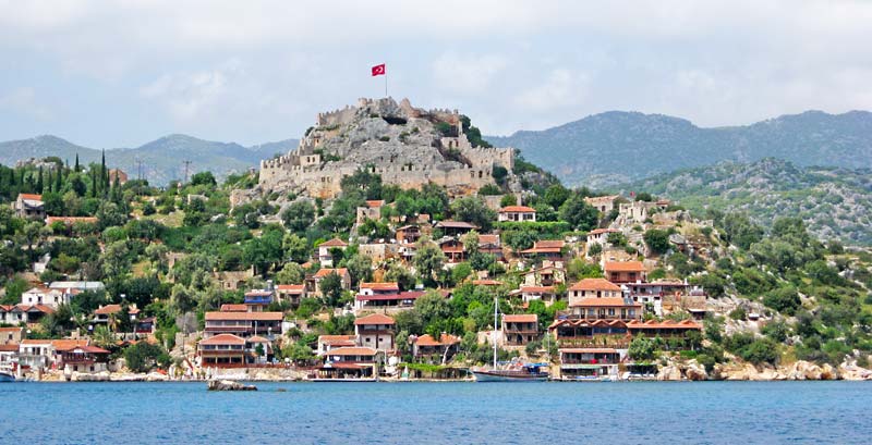 21. April 2012: Kekova/Kaleköy mit der Mittelaterlichen Burg am Eingang der Üçagiz-Reede.