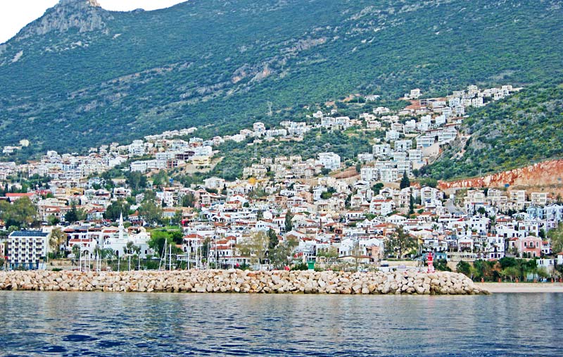 23. April 2012: Kalkan die Touristenstadt am Berghang.