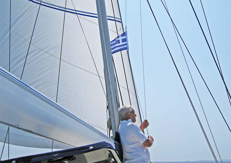 3. Mai 2012: Auf dem Weg nach Rhodos Die türkische Gastlandflagge wird gegen die griechische getauscht