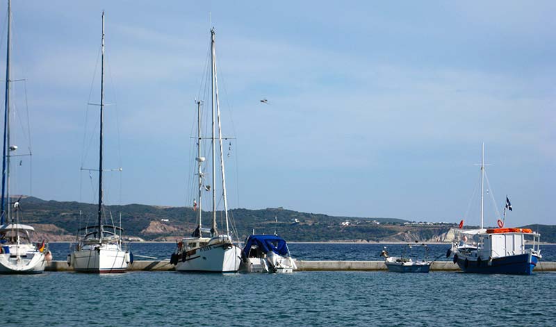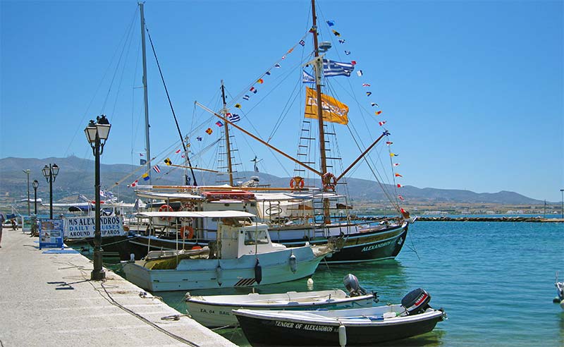 9. Juni 2012:  Antiparos  Boote an der Mole im Hafen von Antiparos