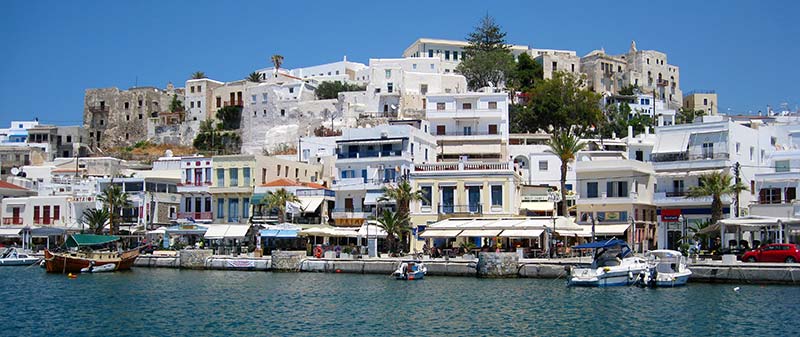 10. Juni 2012:  Naxos  Die Stadt von Naxos mit der Altstadt und die venezianische Burg auf dem Hügel