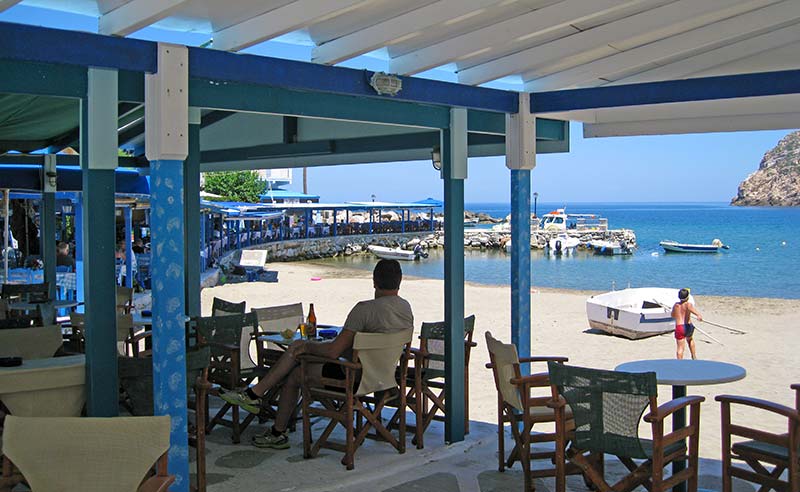 11. Juni 2012:  Naxos  Die Restaurants am Strand von Apolonas