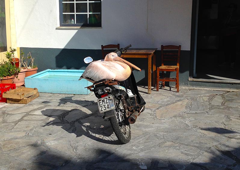 05.05.2014 Tinos - Der Pelikan ruht sich mobil aus