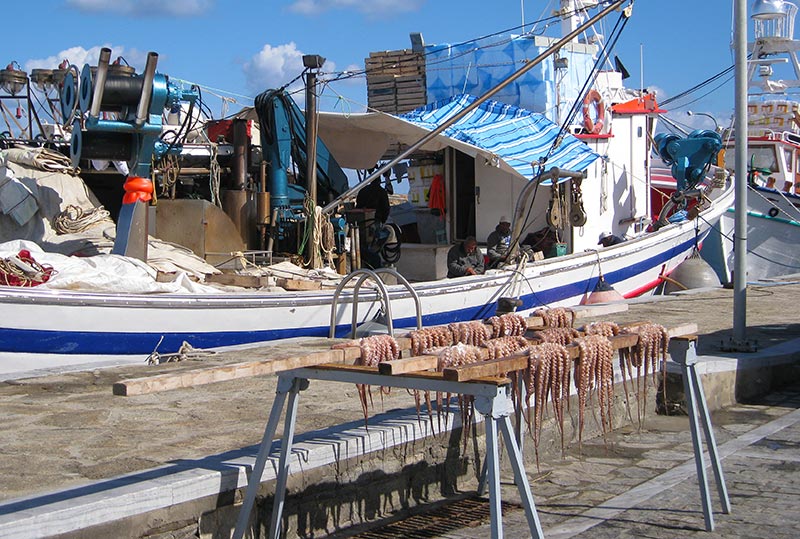19.04.2014 Paros - Naoussa - Tintenfische trocknen an der Sonne