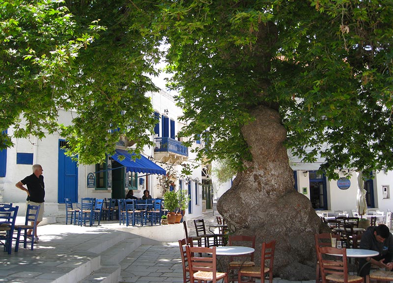 05.05.2014 Tinos- Panormos - Der Dorfplatz mit der knorzigen Eiche