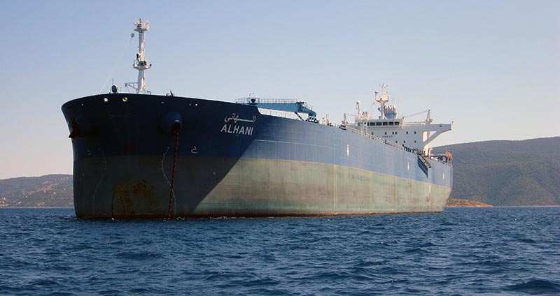 21.05.2014 Piräus - Ein Dickschiff am Anker vor dem Hafen