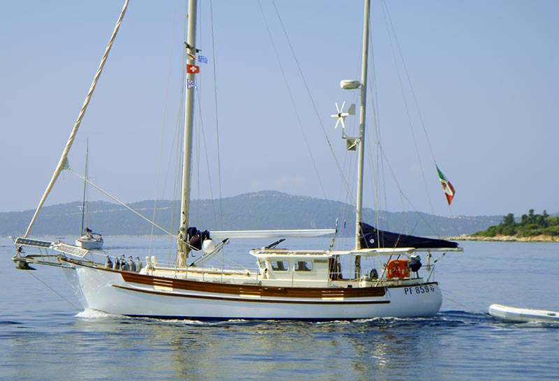 18.07.2014 Bei Meganisi: Die schöne Shangri-La, eine Nauticat 38 unserer Freunde aus der Insel Elba
