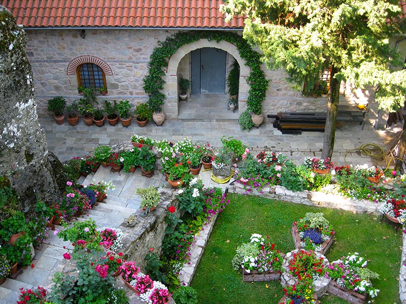 05.06.2014 Kalabaka/Kastraki: Ein schöner, gepflegter Garten in einem Kloster in der Meteora.