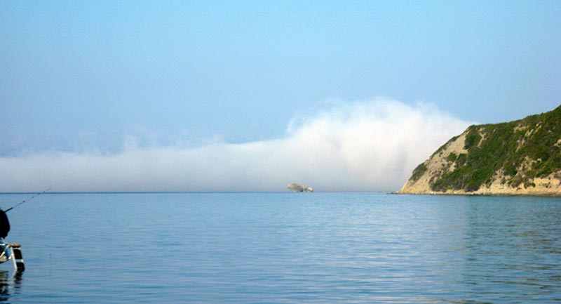 13.08.2014 Othonoi Ormos Phiky: Stellenweise dichte Nebelbänke