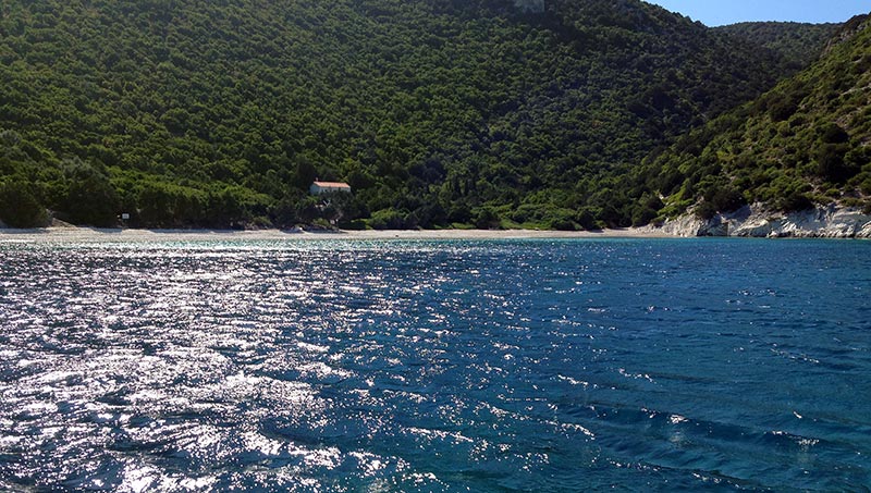 02.08.2014 Syvota: Vor Anker in der Bucht mit der Klosterruine