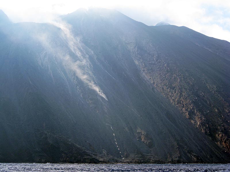 08.09.2014 Stromboli: aus dem neuen Krater rutschen Lavabrocken dem Hang "La Sciara del Fuoco" hinunter