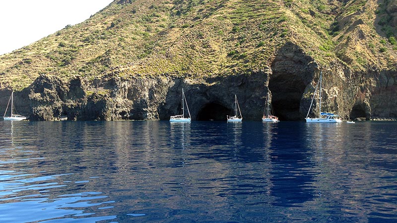Vulcano porto di Ponente: in der Westbucht und erstaunlich wenig Boote für die Höchstsaison