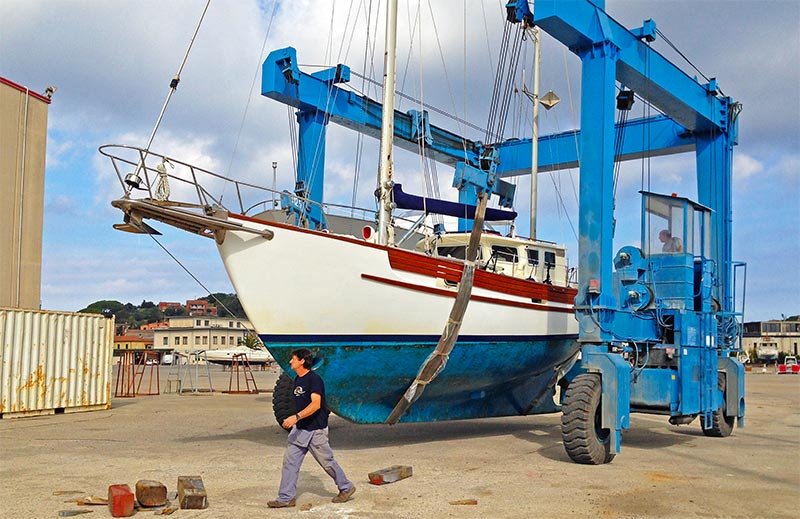 20.10.2014 Elba Portoferraio: Rondinara wird an Land gekrant